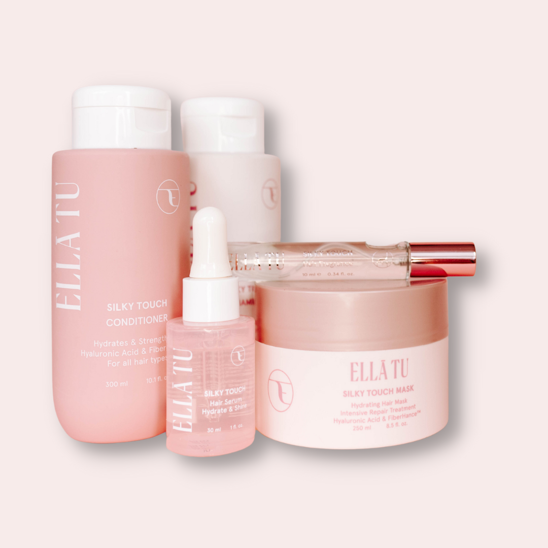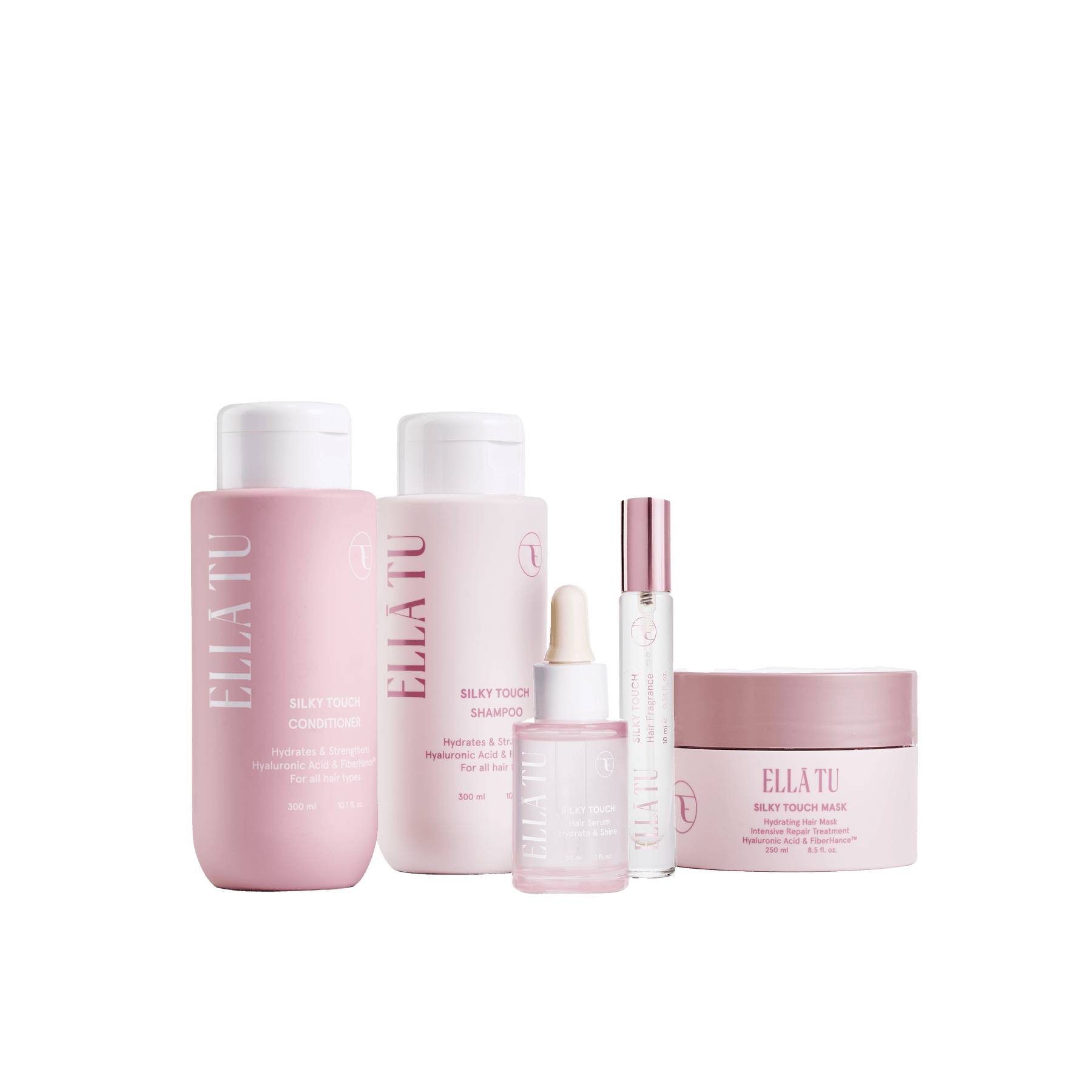סדרת ELLĀTU SILKY TOUCH מותאמת לכל סוגי השיער ובמיוחד לשיער שעבר תהליכים כימיים, ליצירת שגרת טיפוח הוליסטית לקידום ויצירת שיער בריא.